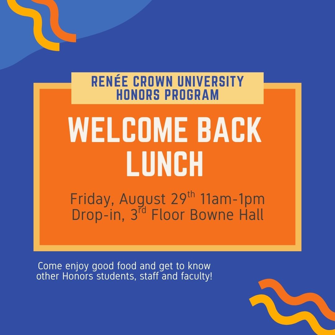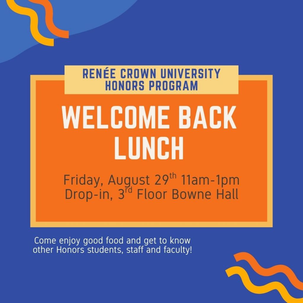 Welcome to the new semester, Honors students! Join us for our Welcome Back Lunch on Friday, August 29th from 11am to 1pm on the 3rd floor of Bowne Hall. Come enjoy good food and get to know other Honors students, staff, and faculty!