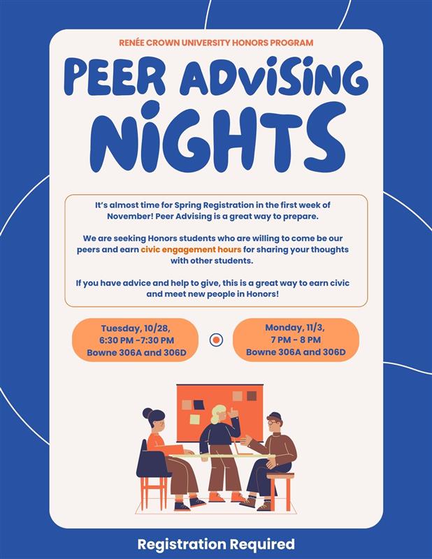 Do you have any questions about schedule planning, registration, or class search for Spring Registration? Join us on October 28th and November 3rd in 306 Bowne Hall for our Honors Peer Advising Nights!