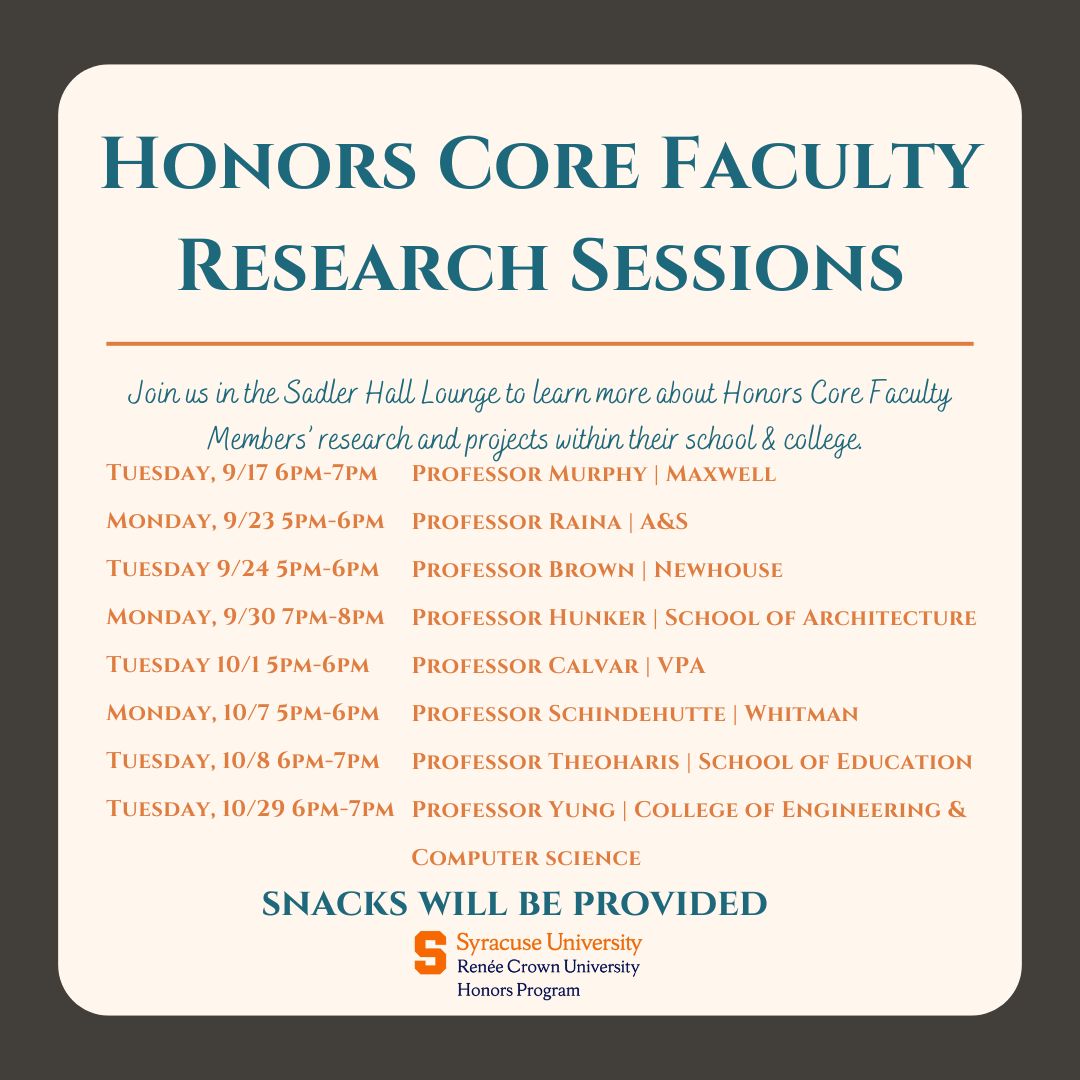 Maxwell Honors Students & Faculty: Meet & Greet with Lunch Come connect over lunch with your Maxwell faculty and discuss how Honors can connect with and support your academic work and activities! The event will be hosted by Honors Advisory Board and Maxwell Honors Core Faculty, Professor Tessa Murphy and Professor Emily Thorsan. Registration is limited…