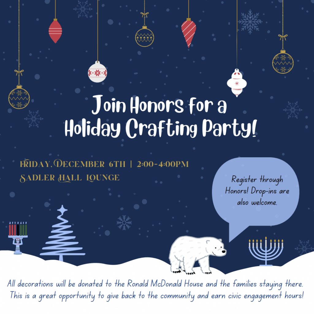 We often hold community-building, civic engagement, and educational events for Honors students.  Both upcoming and past events will be featured here.